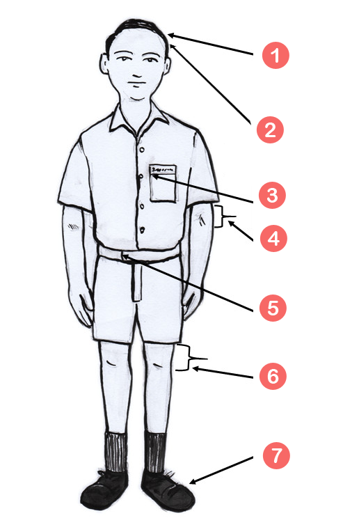 • The hair should be cut short and combed to the side. (Side part hair 1/2 inch long)